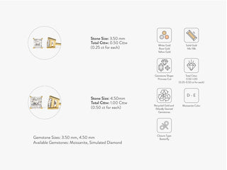 Princess Cut Solitaire Moissanite Stud Diamond Earrings For Women