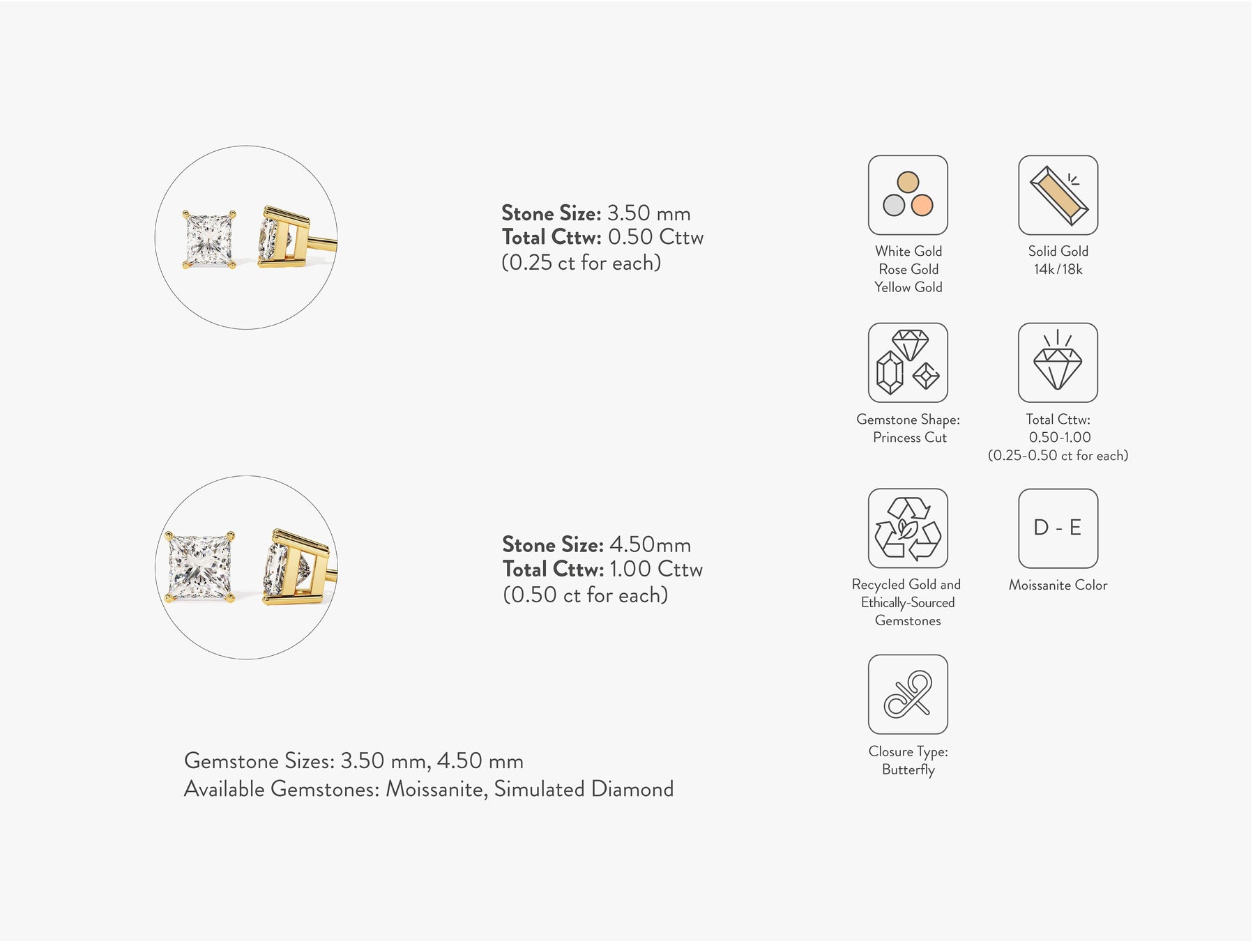 ✥ Introducing our Princess Cut Solitaire Moissanite Stud Diamond Earrings for Women, a perfect fusion of modern elegance and timeless charm. Each earring features a stunning princess-cut Moissanite stone delicately set in a classic solitaire design, radiating brilliance and sophistication. The square shape of the princess cut adds a contemporary touch to these earrings, making them a versatile accessory for any occasion. Crafted with ethically sourced Moissanite stones, renowned for their exceptional sparkle and durability, these earrings offer a sustainable and eco-friendly alternative to traditional diamonds. Elevate your style with these exquisite Moissanite stud diamond earrings, and adorn yourself with beauty and grace that stands the test of time.