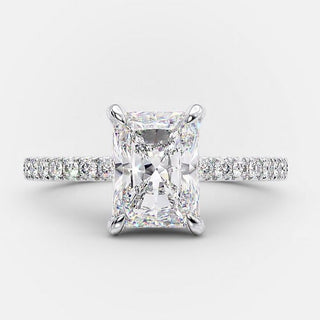 2.0ct Radiant Cut Hidden Halo Moissanite Diamond Engagement Ring in 14K White Gold