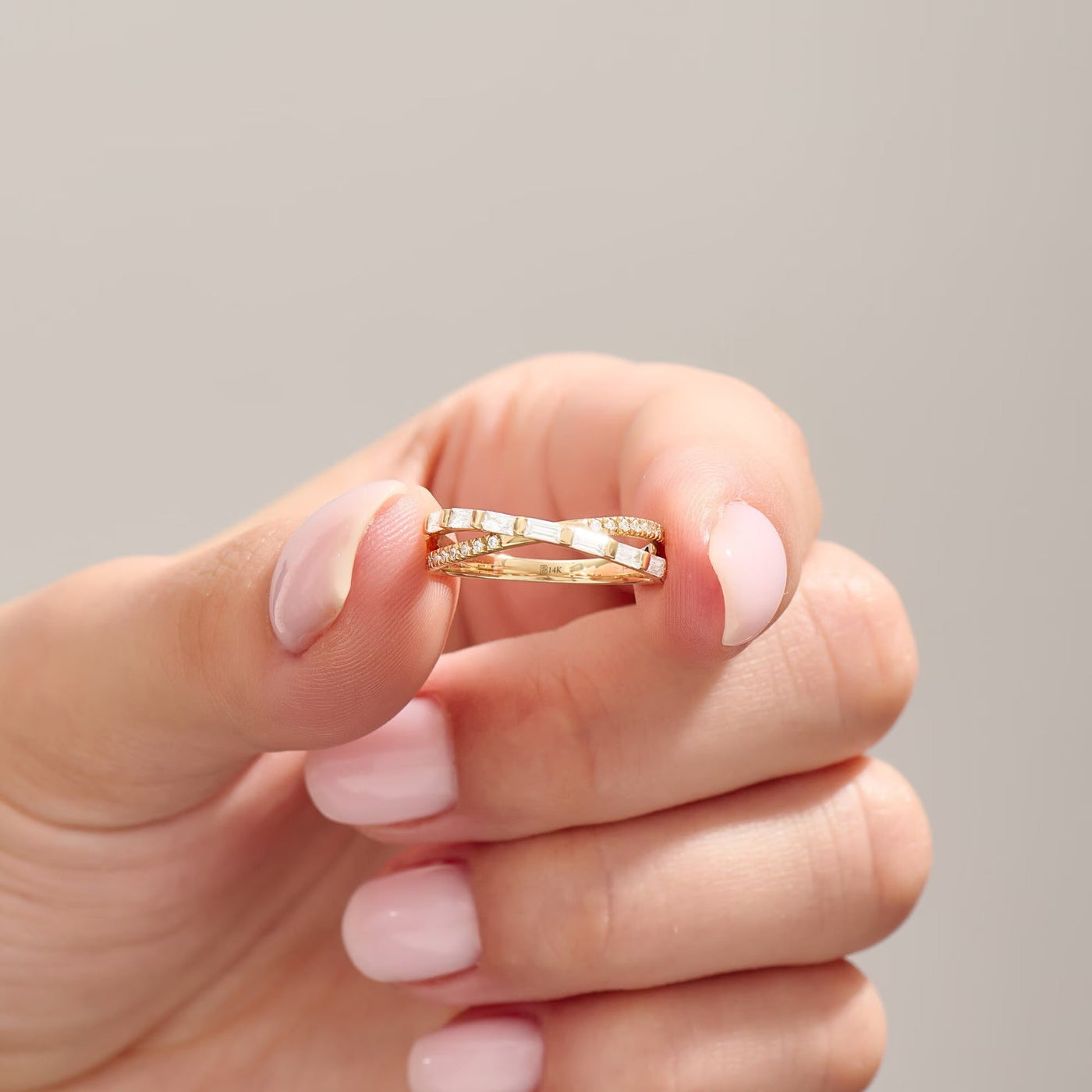 Round & Baguette Cut Diamond Double Cross Wedding Band for Women