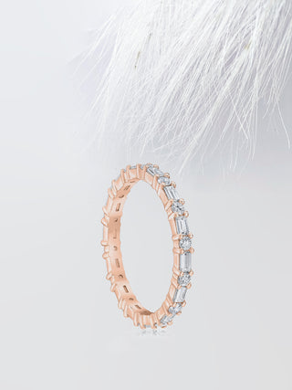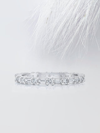 Round & Baguette Cut Eternity Diamond Wedding Band For Women