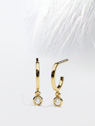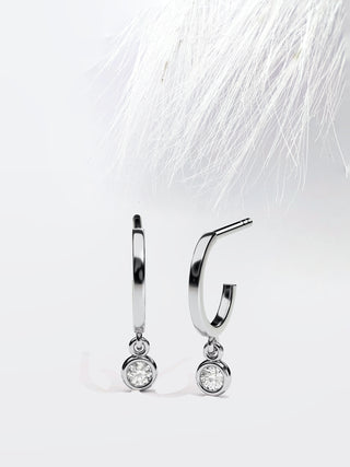 Round Cut Bezel Set Moissanite Huggie Hoops Diamond Earrings For Women