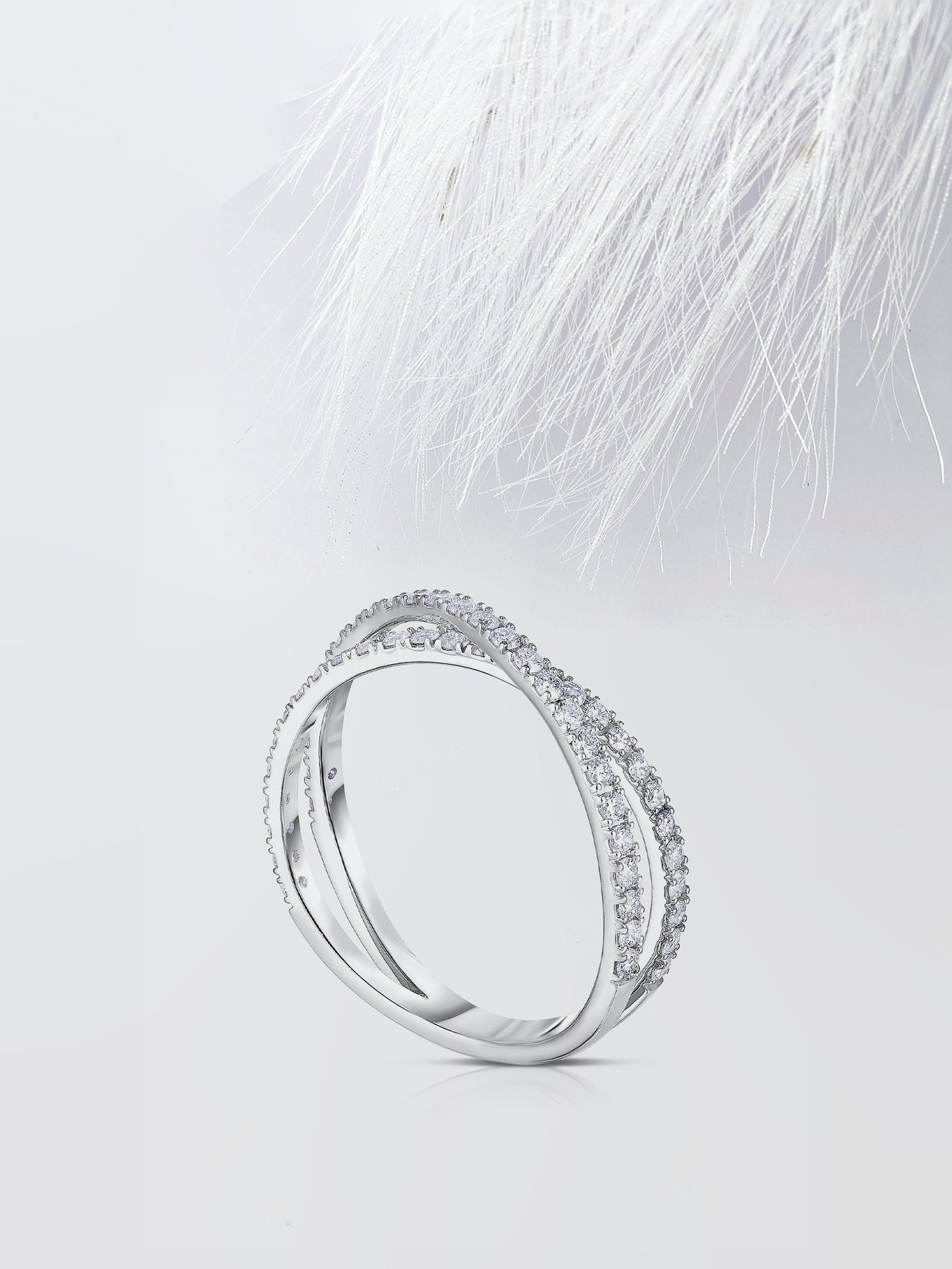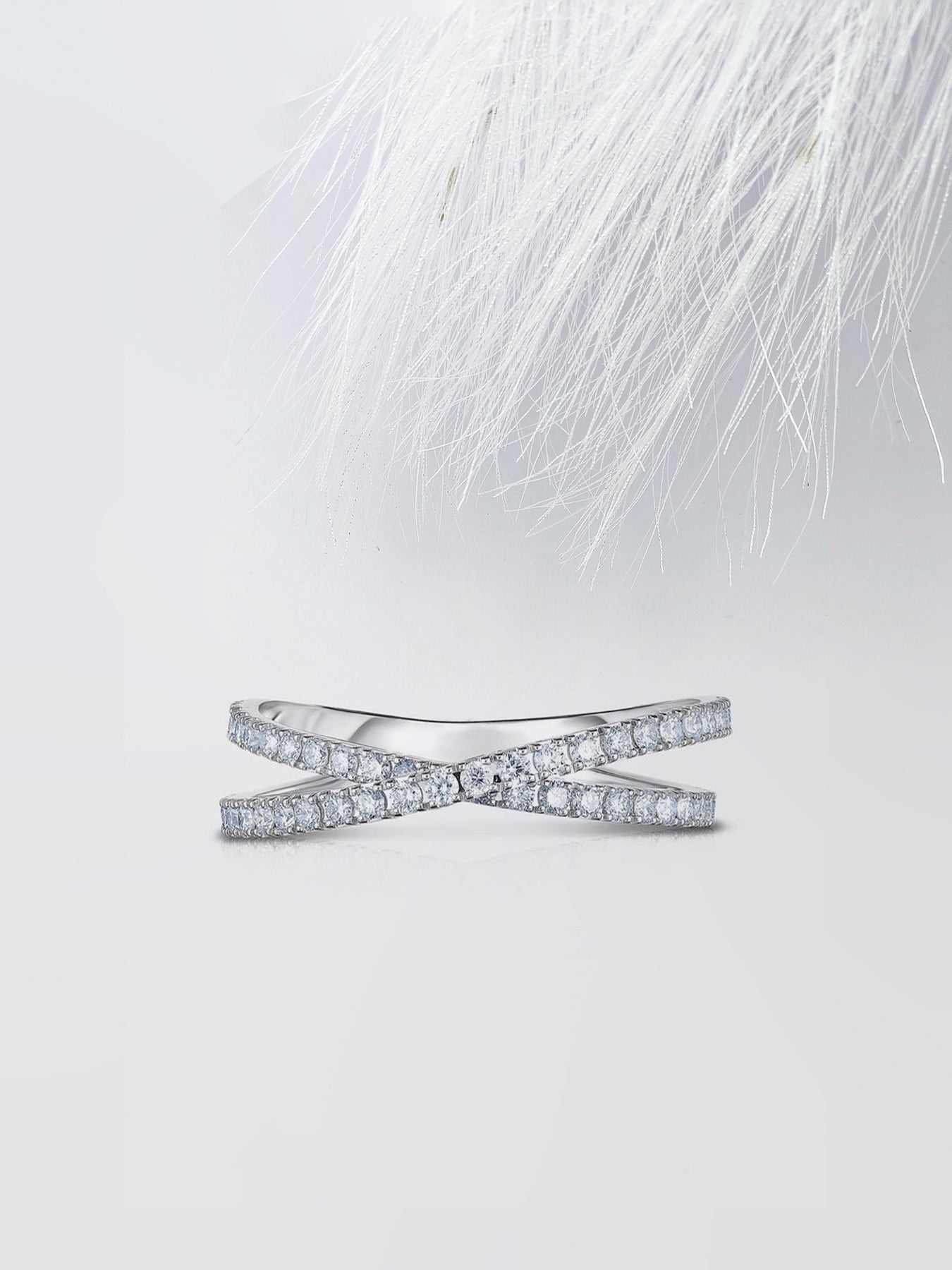 Round Cut Criss Cross Diamond Wedding Band For Women