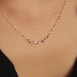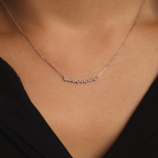✥ Discover elegance with our Round Cut Diamond Curved Cluster Necklace for Women. This exquisite necklace features a gracefully curved pendant adorned with a cluster of sparkling round cut diamonds, creating a dazzling focal point. Crafted from premium materials, it offers durability and lasting shine. Perfect for any occasion, from everyday wear to special events, this necklace adds a touch of sophistication and glamour to her look. An ideal gift choice, symbolizing beauty and refinement, it's a timeless addition to her jewelry collection that she will cherish.