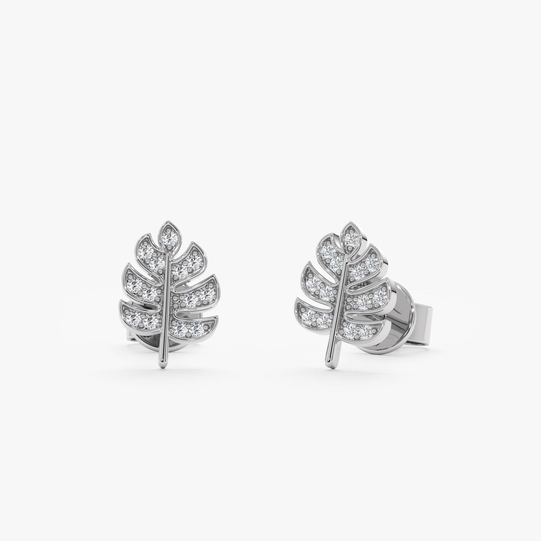 Round Cut Diamond Leaf Stud Earrings for Halloween Gift