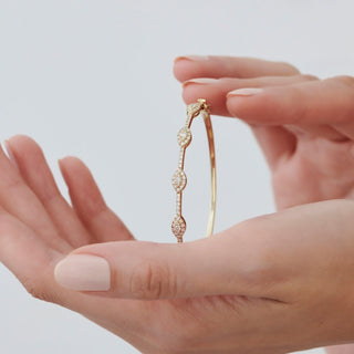 ✥ Embrace elegance with our Round Cut Diamond Moissanite Bangle Bracelet for Women, a stunning blend of sophistication and brilliance. This bracelet features a seamless combination of round cut diamonds and moissanite stones, renowned for their sparkle and clarity, set in a sleek bangle design. Crafted from premium materials for durability and lasting shine, it adds a touch of luxury to any wrist. Perfect for special occasions or everyday wear, it symbolizes modern beauty and timeless elegance. A perfect gift choice, celebrating style and grace, sure to be cherished in any jewelry collection.