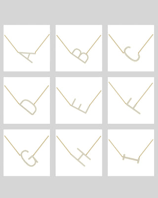 Round Cut Diamond Moissanite Sideways Initial Necklace