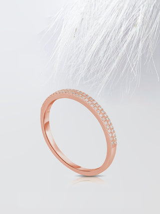 Round Cut Double Row Pave Stackable Diamond Wedding Band