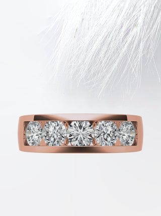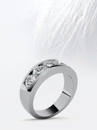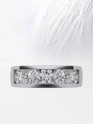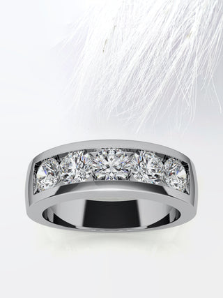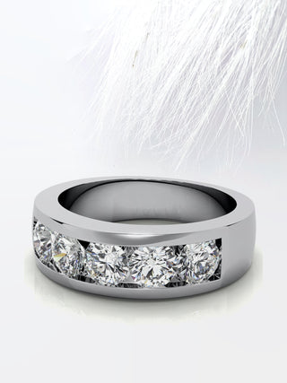Round Cut Five Stone With Channel Row Moissanite Men's Diamond Wedding Band