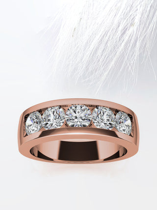 ✦ Introducing our distinguished Round Cut Five Stone with Channel Row Moissanite Men's Diamond Wedding Band, a blend of modern sophistication and timeless elegance. Crafted with precision, this exquisite wedding band features five round-cut moissanite stones set within a channel row, creating a sleek and contemporary design. Each moissanite stone sparkles with brilliance, adding a touch of luxury to the band. Made with eco-friendly moissanite gemstones, this band offers exceptional quality and sustainability without compromising on style. Its unique combination of five stones and channel setting makes it the perfect choice for the modern groom who seeks a distinctive and memorable wedding band. Celebrate your eternal commitment with this extraordinary moissanite wedding band, destined to be treasured for a lifetime of memories.