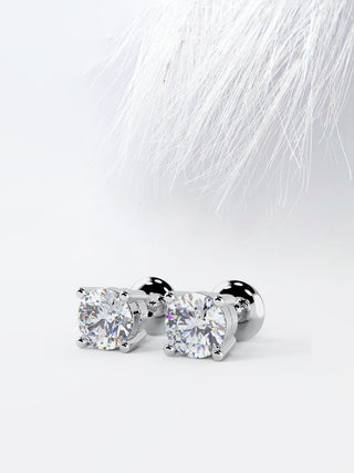 Round Cut Four Prong Moissanite Stud Diamond Earrings For Women