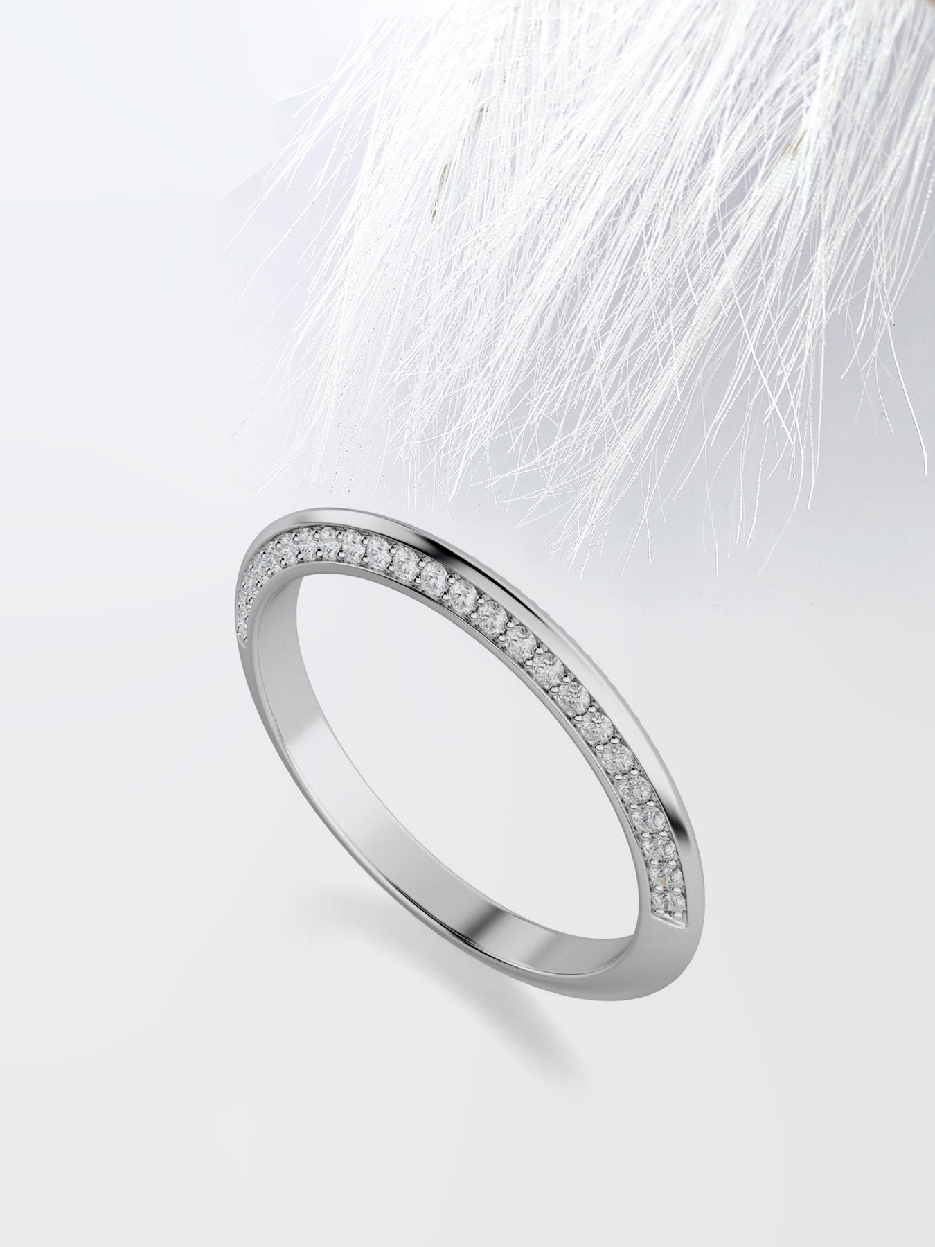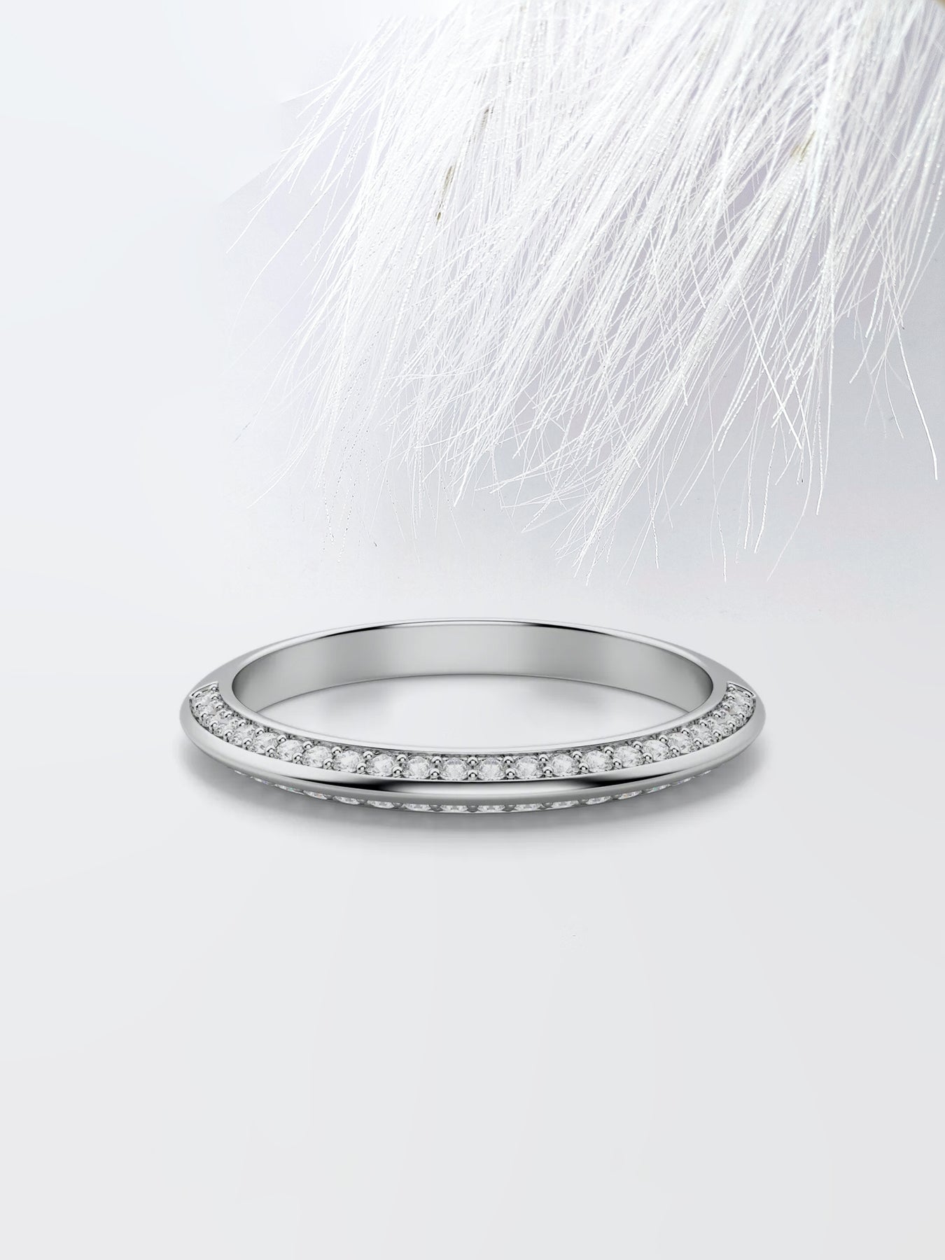 Round Cut Knife-Edge Accented Wedding Band For Women