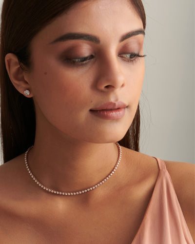 Round Cut Moissanite Classic Single Row Diamond Necklace For Women
