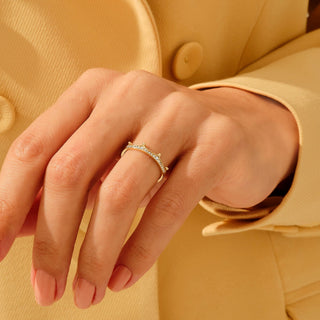 Round Cut Moissanite Diamond Crown Wedding Band in Solid Gold