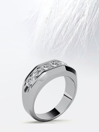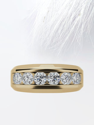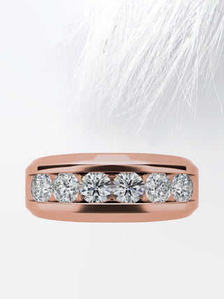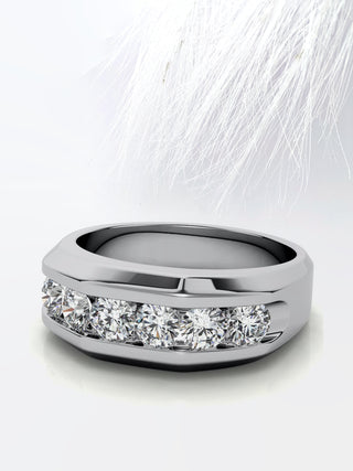Round Cut Six Stone Moissanite Men's Diamond Wedding Band