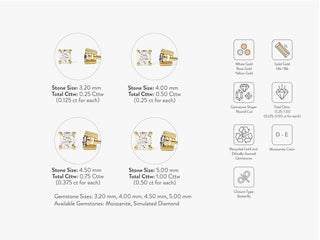 ✥ Introducing our Round Cut Solitaire Moissanite Stud Diamond Earrings for Women, a timeless symbol of elegance and sophistication. Each earring features a dazzling round-cut Moissanite stone delicately set in a classic solitaire design, radiating brilliance and charm. The simplicity of the solitaire setting allows the Moissanite's natural beauty to shine, making these earrings perfect for any occasion. Crafted with ethically sourced Moissanite stones, renowned for their exceptional sparkle and durability, these earrings offer a sustainable and eco-friendly alternative to traditional diamonds. Elevate your look with these exquisite Moissanite stud diamond earrings, and adorn yourself with beauty and grace that lasts a lifetime.