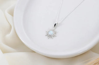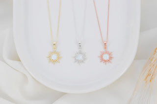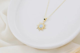 Round Cut Sun Shape Opal Gemstone Necklace -October Birthstone
