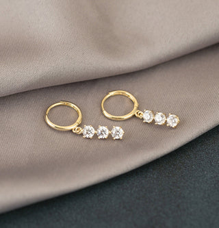 Round Cut Three Stone Diamond Dangle Earrings for Women
