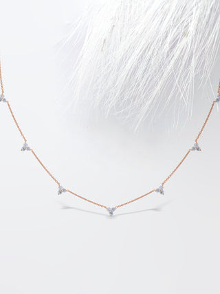 Round Cut Three Stone Diamond Moissanite Necklace (7 Stations) For Women