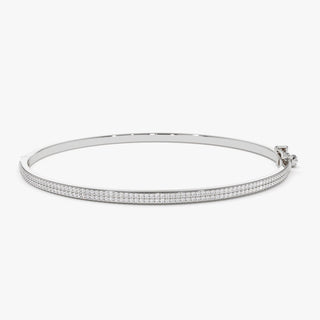 Round Cut Two Row Pave Diamond Bangle Bracelet for Women