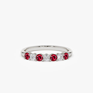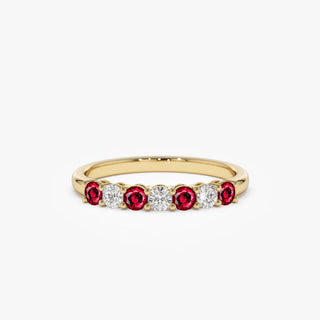 ✥ Celebrate a lifetime of love and devotion with the exquisite Round Ruby and Diamond Wedding Band for Mother. This stunning wedding band features a timeless design with alternating round rubies and shimmering diamonds, symbolizing the enduring bond of marriage. Crafted with precision and care, the ring is made from high-quality materials, ensuring lasting beauty and durability. The deep red hues of the rubies complement the brilliance of the diamonds, creating a mesmerizing contrast that catches the light with every movement. Whether worn as a wedding band or a stylish accessory, this ring is a meaningful and elegant choice for any mother. Honor her love and sacrifice with this beautiful symbol of eternal love and commitment.