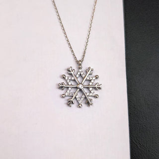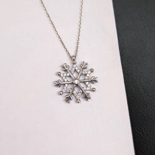 ✥ With its exquisite combination of timeless beauty and festive charm, this Snowflake Diamond Necklace makes the ideal Christmas present. This lovely necklace perfectly reflects the sparkle and joy of the festive season with its gorgeous snowflake design set with dazzling diamonds. Made from premium materials, it gives an elegant touch to any ensemble and is a unique addition to her jewelry collection. This diamond snowflake necklace is a thoughtful and entrancing gift that is perfect for celebrating Christmas or surprising someone special. It will make her holiday season shine with joy and grace.