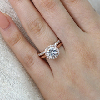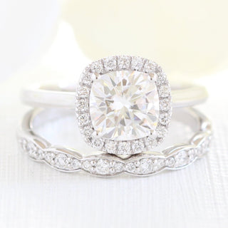 Solitaire Cushion Cut Halo Moissanite With Scalloped Band Ring